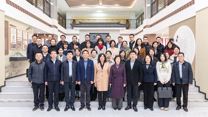 随后,一行人考察了学校“一融双高”建设成果展与齐鲁文化研究院。周珊珊介绍了学校近年来坚持以高质量党建为引领、坚守立德树人使命,在学科建设、人才培养、科学研究、社会服务等领域取得的显著成就。齐鲁文化研究院院长吕文明带领大家参观齐鲁文化馆、基地成果展陈室、山东古砖陈列室及古代石刻拓片馆。